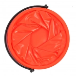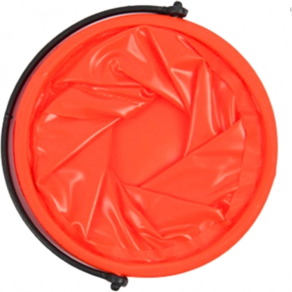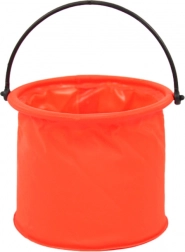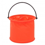 Oranžový skladací vedro môže byť ľahko zložený do plochého tvaru, čo uľahčuje jeho uskladnenie a prenášanie.