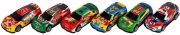 Usporiadaj domáce preteky so sadou šiestich farebných autíčok s dĺžkou 7 cm na spätné natiahnutie. Každé autíčko má výrazný racingový dizajn, hladko jazdí po rovnom povrchu a prináša hodiny kreatívnej zábavy pre deti od 3 rokov. Kompaktné balenie sa ľahko zmestí do batohu a je ideálne na cesty.