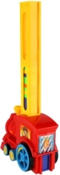 Vláčik pri jazde sám stavia farebné kocky do dlhej rady. Deti si užijú hladké a rýchle prípravy na veľké dominové kaskády.