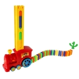Zábavný domino vláčik, ktorý počas jazdy sám ukladá až 60 farebných kociek do uhladenej rady. Ponúka automatickú zmenu smeru pri náraze, jednoduché ovládanie smeru pootočením komínka a efektné svetelné a zvukové efekty. Skvelá pomôcka na rozvoj jemnej motoriky, trpezlivosti a tvorivosti detí.