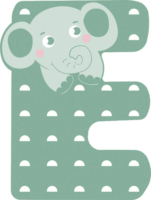 Vytvárajte mená, nápisy alebo veselé vety s písmenami z novej zvieracej ABC série. Drevené písmeno E od značky small foot je z kvalitného, 100% FSC® certifikovaného dreva, takže poteší nielen deti, ale aj rodičov, ktorí dbajú na udržateľnosť. Pastelové farby a motív slona dodajú každej stene, poličke či dverám šmrnc.