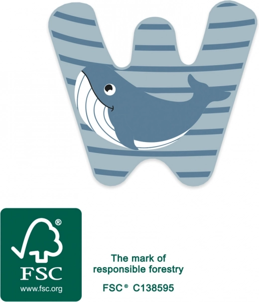 Začnite svoju cestu po abecede s týmto nádherným dreveným písmenom W, ktoré je vyrobené zo 100% FSC certifikovaného dreva. Tento produkt nielenže prispieva k udržateľnosti planéty, ale tiež prináša jedinečný dekoratívny prvok vďaka veselým pastelovým farbám. Pôvabný dizajn s veľrybou stimuluje detskú predstavivosť.