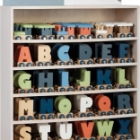 Zábava s polárnymi písmenami! Skladajte písmená vláčikov do slov či mien pomocou moderných farieb a prírodného dreva. Ideálne pre deti ako dekorácia do izbičky.