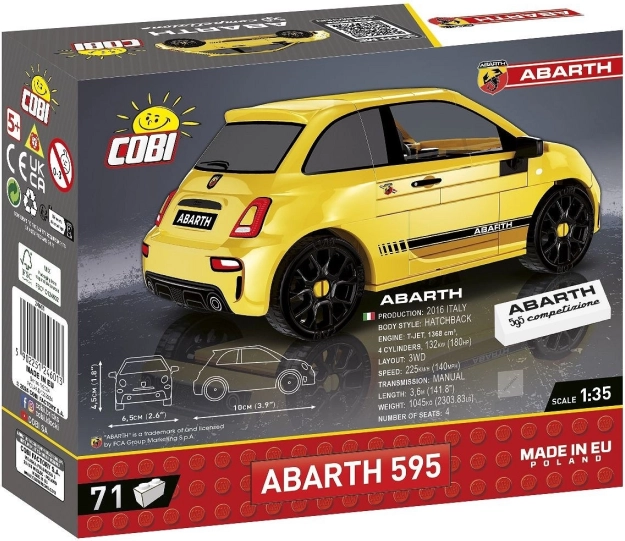 Licencovaný model z kociek COBI zachytáva ikonické vozidlo ABARTH 595 Competizione v mierke 1:35. Ponúka 71 kvalitných dielikov s odolnými potlačami, otáčajúce sa kolesá s pneumatikami a kompatibilitu s ďalšími značkami. Ideálne ako zberateľský model aj zábavná stavebnica pre malých aj veľkých milovníkov áut.