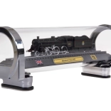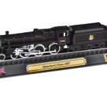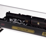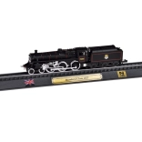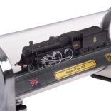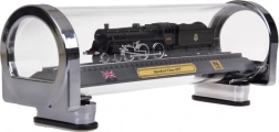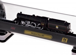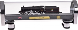 Tento detailný model britskej parnej lokomotívy STANDARD CLASS 4MT je ideálnou voľbou pre milovníkov železníc aj štýlových dekorácií. Precízne spracovanie v mierke 1:160 zvýrazňuje autentické detaily, kontrastné lakovanie a jemné linkovanie kolies. Model je upevnený na úseku koľajníc na elegantnom podstavci s plaketou, britskou vlajkou a označením mierky.