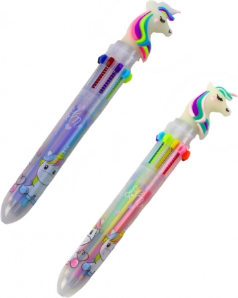 Toto viacfarebné guľôčkové pero s roztomilým motívom jednorožca kombinuje hravý vzhľad a praktickosť. Jedným kliknutím si vyberiete z 10 rôznych farieb atramentu, takže máte všetko potrebné na písanie, podčiarkovanie aj kreslenie vždy po ruke.