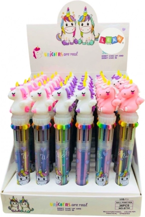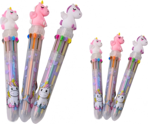 Štýlové pero s figúrkou jednorožca na vrchu premení každodenné písanie na zábavu. Jediným stlačením ľahko zvolíte požadovanú farbu, takže nie je potrebné meniť písacie potreby. Skvelé na písanie, podčiarkovanie aj vyfarbovanie.
