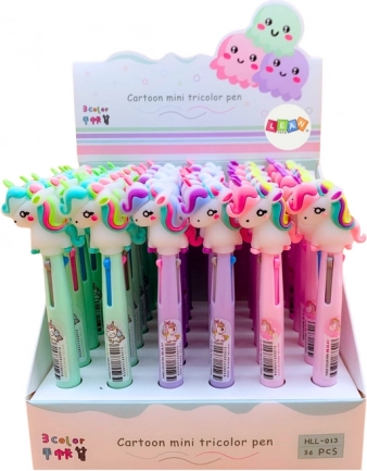 Automatické viacfarebné pero s jednorozcom, 3 farby