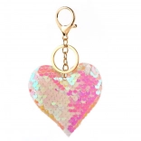 Tento prívesok je vyrobený v tvare srdca a je pokrytý obojstrannými flitrami v bielej a svetloružovej farbe, ktoré vytvárajú elegantný a trblietavý vzhľad.