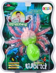 Zábavná a originálna hračka: naťahovací zelený pavúk s realistickými detailmi. Má gumové, pružné nohy, ktoré možno naťahovať a ohýbať, a odolné plastové telo. Skvelý na kreatívnu hru aj ako dekorácia do izby.