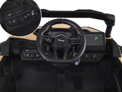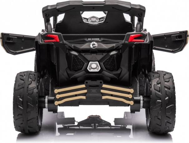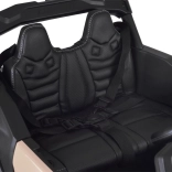 Terénne buggy pre malých dobrodruhov je postavené na pohone 4x4 so štyrmi silnými motormi a tlmičmi vpredu aj vzadu. Mäkké EVA pneumatiky skvele tlmia nerovnosti a spolu s plynulým štartom a brzdou po uvoľnení pedála robia z jazdy bezpečný zážitok. O komfort sa stará ergonomicky tvarované sedadlo z eko kože a päťbodové pásy.