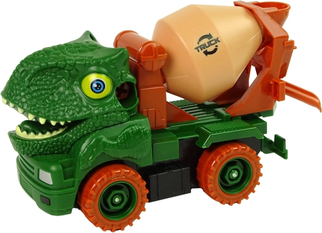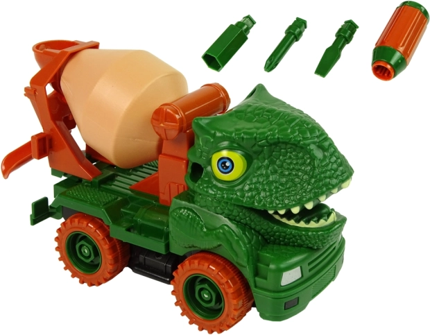 Zábavná detská miešačka v dizajne dinosaura pre malých staviteľov. Auto možno pomocou priloženého skrutkovača ľahko rozobrať a zasa poskladať, čo rozvíja jemnú motoriku, logické myslenie a kreativitu. Vďaka setrvačníku stačí natiahnuť dozadu a vyraziť. Otočný bubon a realistická dinosauria hlava s detailmi zaručia fantazijnú hru na stavbe aj v pravekom parku.