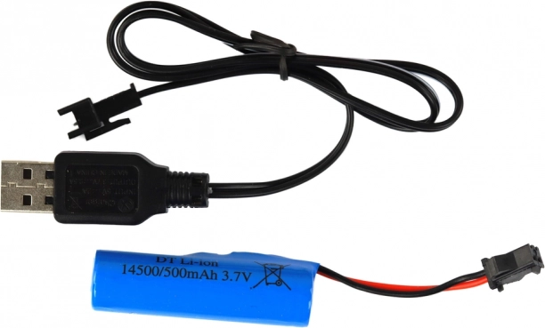 Súčasťou je Li‑ion akumulátor 3,7 V 500 mAh a USB nabíjačka. Nabíjanie do 2 hodín, dojazd až 30 minút na jedno nabitie.