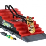 Tento prstový skatepark prináša realistický zážitok z fingerboardingu vo vreckovej veľkosti. Robustná plastová konštrukcia so schodiskom, rampou a kovovým zábradlím je ako stvorená na grindy, ollie a ďalšie triky. Súčasťou balenia je fingerboard s dĺžkou 8 cm a drobné náradie a diely na skrutkovacie úpravy.