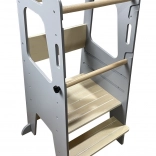 Učenlivá veža je viacúčelový a funkčný kus nábytku, ktorý podporuje samostatnosť a motorické zručnosti detí. Vďaka chytrému tvaru a ohrádke okolo stojacej plochy sa dieťa cíti stabilne a bezpečne, zatiaľ čo má rodič neustály dohľad. Vežu ľahko priskrutkujete ku kuchynskej linke alebo pracovnej doske tak, aby bola vždy pevne pri prekážke oproti schodíku.