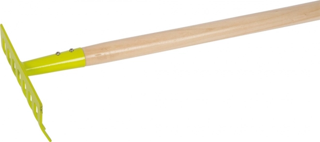 Ľahké a odolné detské hrable v sviežej zelenej farbe pre malých záhradníkov od 3 rokov. Ergonomická drevená násada, robustná kovová hlava a nízka hmotnosť uľahčujú hrabanie lístia, trávy aj drobných vetvičiek. Súčasťou je praktické pútko na zavesenie. Cena je uvedená za 1 ks.