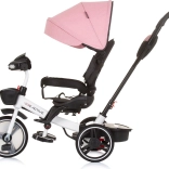 Táto univerzálna trojkolka Chipolino Be Active 2v1 Pink Linen rastie spolu s dieťaťom: najprv ju pohodlne ovládate vy pomocou rodičovskej rukoväti, neskôr dieťa prechádza na samostatné šliapanie a riadenie. O komfort sa stará mäkké polstrovanie, nastaviteľné opierky nôh a skladacia strieška so slnečnou clonou, ktorá chráni pred počasím.