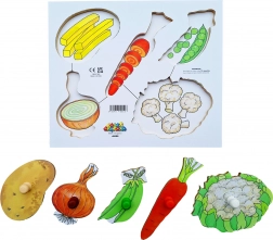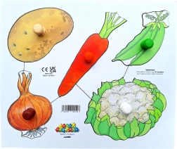 Toto drevené deskové puzzle je navrhnuté tak, aby deťom predstavilo zeleninu nielen vcelku, ale aj po nakrájaní. Deti si pomocou kolíčkov ľahko uchopia jednotlivé diely a budú sa učiť priraďovať správnu zeleninu k jej rezaným verziám. Vlastnosti produktu: