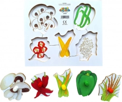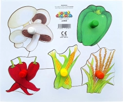 Puzzle obsahuje farebné ilustrácie zeleniny, ktoré pomôžu deťom rýchlejšie rozpoznať ich tvary a farby.