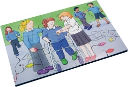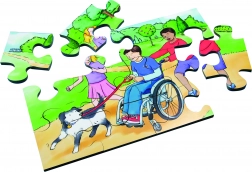 Objavte edukatívne puzzle so 72 dielmi, ktoré zobrazujú scény zahŕňajúce jednotlivcov so zdravotným postihnutím v bežných aktivitách. Každý obrázok podporuje myšlienku integrácie a vzájomnej pomoci. Tieto puzzle pomáhajú deťom chápať rovnosť, empatiu a rešpektovať odlišnosti ostatných.