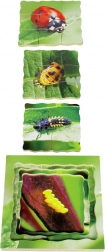 Objavte netradičné vzdelávacie puzzle, ktoré zaujme deti aj dospelých. Toto vrstvené puzzle obsahuje štyri fázy vývojového cyklu lienky: vajíčka, larvu, kuklu a dospelú lienku, čo predstavuje skvelý spôsob, ako poznávať prírodu hravo.