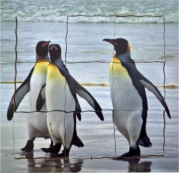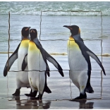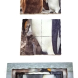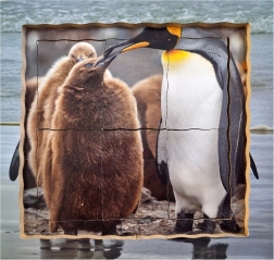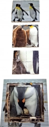- Fázy vývoja: Puzzle predstavuje vajíčka s rodičom, čerstvo vyliahnuté mláďa, staršie mláďa počas kŕmenia, a dospelé tučniaky.