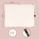 Elegantný linajkový zápisník s pevnými doskami a praktickým uzatváraním na gumičku. Ponúka pútko na ceruzku, vnútorné vrecko na drobnosti a 172 bodkovaných strán na žltom papieri pre vaše nápady, denníkové záznamy aj pracovné poznámky.