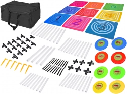 Zábavná zručnostná hra pre deti od 3 rokov, ktorá rozvíja presnosť, koordináciu pohybov a rýchle reakcie. Farebný terč s deviatimi poľami a ľahké disky lákajú k hre vonku aj doma. Vďaka jednoduchej montáži a praktickej taške je set ideálny na rodinné výlety, do škôlok aj na tréningy.