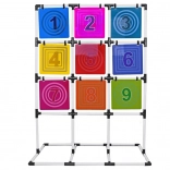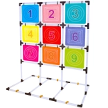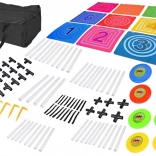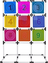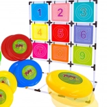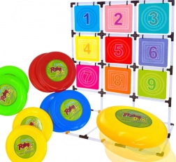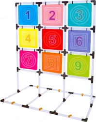 Tento kompletný set na hádzanie diskov na terč prináša aktívnu zábavu pre jedného aj viacerých hráčov. Stabilný rám s mriežkou deviatich farebných očíslovaných polí podporuje učenie čísel, súťaživosť aj tímového ducha. Hra rozvíja jemnú aj hrubú motoriku, odhad vzdialenosti a presnosť hodu.
