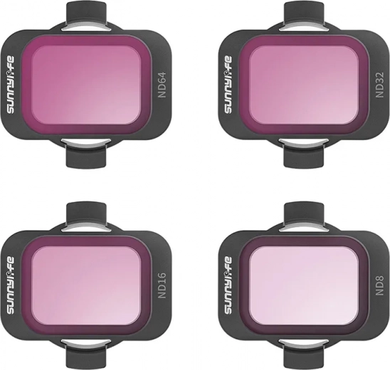ND8, ND16, ND32 a ND64 pokrývajú od ľahko zamračenej oblohy až po ostré poludňajšie slnko. Rýchla inštalácia, kompatibilné s krytom kardanového zavesenia.