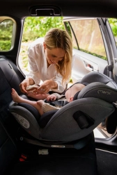 Jedinečnou funkčnosťou autosedačky je otočná základňa, umožňujúca jednoduché nastavenie proti smeru jazdy (RWF) aj po smere jazdy (FWF). Sedačka je vybavená systémom ISOFIX s indikátorom správnej montáže a Tether pásom pre ešte väčšiu bezpečnosť.
