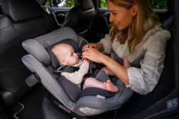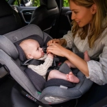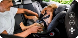 MoMi EMI ponúka otáčanie o 360°, čo umožňuje jednoduché nasadzovanie proti aj po smere jazdy. Zahrňuje bočné výstuhy SIPS, 11 polôh opierky hlavy a 6 úrovní sklonu pre maximálne pohodlie a bezpečnosť. Ďalšiu istotu poskytujú upevňovacie systémy TOP TETHER.