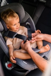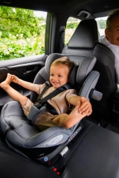 Multifunkčná autosedačka MoMi Emi ponúka najvyššiu úroveň ochrany pre deti od 40 do 150 cm vďaka svojej otočnej základni a splneniu prísnych bezpečnostných noriem.