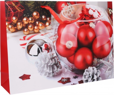 Vyberať môžete z atraktívnych motívov s vianočnými ozdobami, lampášmi a zimnou výzdobou, ktoré podčiarknu slávnostnú atmosféru. Taška je znovupoužiteľná a predstavuje rýchly, estetický a ekologickejší spôsob balenia bez potreby lepenia a strihania papiera.