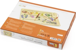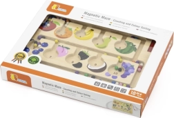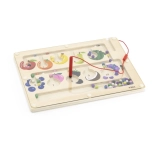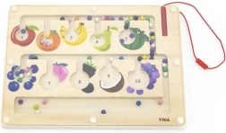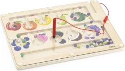 Tento kvalitný drevený magnetický labyrint je skvelou edukačnou hračkou na rozvoj detskej šikovnosti. Deti pomocou magnetického pera posúvajú farebné guličky po vyznačených cestičkách, triedia ich podľa farieb a priraďujú k obrázkom ovocia či číslam. Hra podporuje logické myslenie, sústredenie a koordináciu oko–ruka.