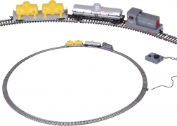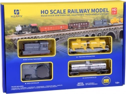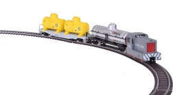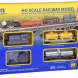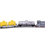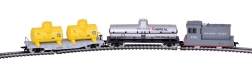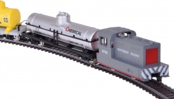 - Kompletný obsah: lokomotíva SOUTHERN PACIFIC, plošinový vozeň s dvoma žltými cisternami, strieborná chemická cisterna, oblúky 30° (11 ks), napájací oblúk, napájací zdroj a prepojovací kábel.