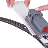 Súčasťou balenia sú kovové koľaje s plastovými podvalmi, presne gravírované pre realistický vzhľad. Modulárny systém zasúvacích koľajníc drží pevne pokope a možno ho kombinovať s ďalšími setmi rovnakej série. Nechýba ani praktický narážač/„vkoľajovač“ na jednoduché usadenie vozidiel na trať.