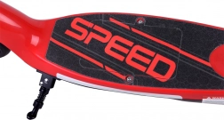 Užite si zábavnú a bezpečnú jazdu s elektrickou kolobežkou pre deti. Farebné LED pásiky po stranách dosky a biele predné svetlo zvyšujú viditeľnosť, zatiaľ čo široká protišmyková plocha s nápisom SPEED pridáva stabilitu. Stačí stlačiť spúšť na pravej rukoväti a môžete plynule vyraziť – po jej uvoľnení sa aktivuje elektrická brzda.