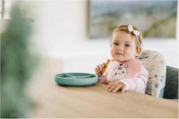 Tento tanierik je vybavený prísavkou, ktorá zaisťuje stabilitu na stole a umožňuje deťom pohodlne jesť samostatne. Je tiež ľahko čistiteľný a vhodný do mikrovlnky na maximálne 2 minúty, čo prináša väčšie pohodlie pri každodennom používaní.