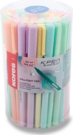 Kores guľôčkové pero je navrhnuté pre maximálny komfort pri písaní vďaka ergonomickému a mäkkému povrchu. Je opatrené extra jemným modrým atramentom na báze gélu, ktorý zaručuje hladké a plynulé písanie. Telo aj viečko pera sú vyvedené v atraktívnych pastelových farbách, ktoré upútajú vašu pozornosť.