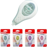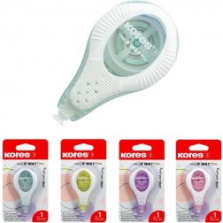 Jednorazový korekčný strojček Kores 2 Way Pastel zabezpečuje precízne opravy vďaka svojej opravnej páske o šírke 4,2 mm a dĺžke 8 m.