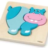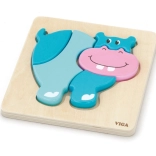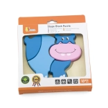 Drevené puzzle – vkladačka pre najmenších s motívom hrocha. Rozmery hrocha cca 13 × 11 cm. Rozmery balenia cca 15,5 × 18 × 2 cm. Vek 18m+