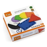 Táto sada podporuje prirodzené učenie v duchu montessori – dieťa prevlieka šnúrky pripravenými dierkami, vytvára vlastné vzory a zároveň posilňuje úchop aj sústredenie. Farebné tvary lákajú k objavovaniu, šnúrky sa ľahko držia a aktivita príjemne zabaví doma aj v škôlke.