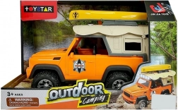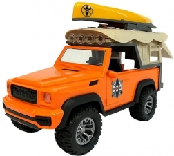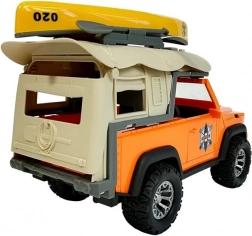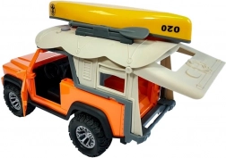 Vyrazte na imaginárne výpravy do prírody s kempingovým autom JEEP v oranžovej farbe a štýlovým žlto‑sivým kajakom. Vďaka svetlu a zvuku pôsobí jazda realisticky, otvárateľné dvere a zadná klapka pozývajú k objavovaniu interiéru a gumové pneumatiky si poradia s rôznymi povrchmi v detskej izbe.