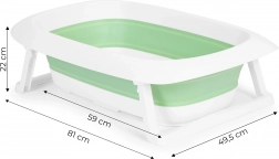 Vďaka skladacím nohám a nízkemu profilu vaničku v okamihu zložíte a uložíte do skrinky alebo zavesíte na háčik. Protišmykové nohy aj protišmyková vložka dna pomáhajú držať vaničku aj bábätko v stabilnej a bezpečnej polohe.