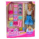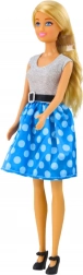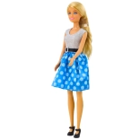 Bábika Anlily je elegantná bábika, ktorá okúzli svojim vzhľadom a bohatými detailmi. Je vybavená štýlovým strieborným topom, modrou sukňou s bielymi bodkami a doplnená čiernym opaskom a topánkami. Táto kombinácia umožňuje deťom experimentovať a vytvárať unikátne módne štýly.