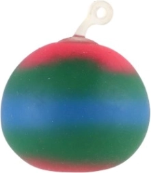 Dúhová antistresová loptička z mäkkého silikónu skvele padne do ruky a pomáha s uvoľnením stresu a zlepšením koncentrácie. Vďaka priemeru 11 cm sa pohodlne stláča, tvaruje aj ohýba. Praktický záves umožní pripnutie na tašku či kľúče – ideálna domov, do práce aj na cesty.