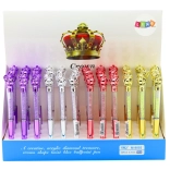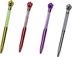 Elegantné guľôčkové pero s dekoratívnou korunkou a priehľadným telom plným trblietavých kamienkov. Ponúka modrý atrament, hrot 0,7 mm pre plynulé písanie a luxusný vzhľad na každodenné použitie aj darčekové príležitosti. Dostupné v mixe farieb.