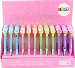 Jedinečné pero, ktoré spája eleganciu a moderný dizajn. Priehľadné telo s drobnými kamienkami vytvára efektné odlesky a zakončenie v tvare „diamantu“ dodá písaniu šmrnc. Vďaka modrej náplni a šírke hrotu 0,7 mm poskytuje plynulú a čitateľnú stopu vhodnú do školy, kancelárie aj na osobné poznámky.