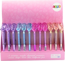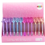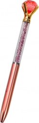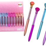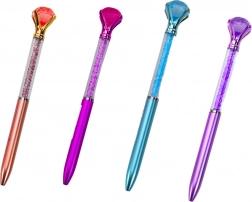 Ozdobte svoje poznámky štipkou lesku. Toto elegantné pero kombinuje komfortné písanie s luxusným vzhľadom – priehľadné telo s drobnými trblietkami vytvára efektné odlesky a horný „diamant“ dodáva originálny štýl. Modrá náplň 0,7 mm zaisťuje hladký a čitateľný ťah bez rozmazávania.